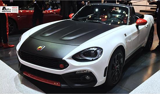 Binnenin is er dankzij de toepassing van Alcantara een unieke ervaring qua afwerking. De in Genève getoonde retro lakkleuren gecombineerd met antireflectie mat zwarte afwerking van de motorkap, luisteren naar de historiserende namen ‘Bianco Turini 1975′ en Rosso Costa Brava 1972’. In de folder staan ook ‘Blu Isola d’Elba 1974’, ‘Grigio Portogallo 1974’ en ‘Nero San Marino 1972’. Je raadt het al, de plaatsnamen herinneren aan overwinningen van de 124 Spider in de Rally-geschiedenis. In 2016 plant Abarth een productieaantal van 2500.