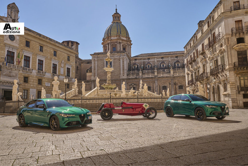 Ook de Q varianten van de magnifieke Giulia en Stelvio ontvangen de recente update. Uiteraard is dat een uitgelezen kans om dit te doen samenvallen met het eeuwfeest rond het klaverblaadje. Daarom start Alfa Romeo de update van de twee topmodellen met een speciale editie, voluit genaamd “Quadrifoglio 100° (centesimo/honderdste) Anniversario”. De legendarische witte driehoek met groen klaverblad krijgt voor de gelegenheid een gouden rand. Ongetwijfeld zal Alfa Romeo de twee extra sterke uitvoeringen met maar liefst 520 pk, aan het grote publiek tonen tijdens de tweede editie van de internationale ‘Tribe Day’ van 30 juni tot en met 2 juli op het Le Mans en het Autodrome de Linas-Monthléry circuit. Maar dat juist vandaag het doek van deze twee is getrokken is geen willekeur, want op 15 april 1923 werd op de Alfa Romeo RL van Ugo Sivocci tijdens de veertiende Targa Florio voor het eerst het magische klaverblaadje gebruikt. Exact 100 jaar geleden. De beelden die je hier ziet zijn dan ook op het al even magische Sicilië gemaakt.