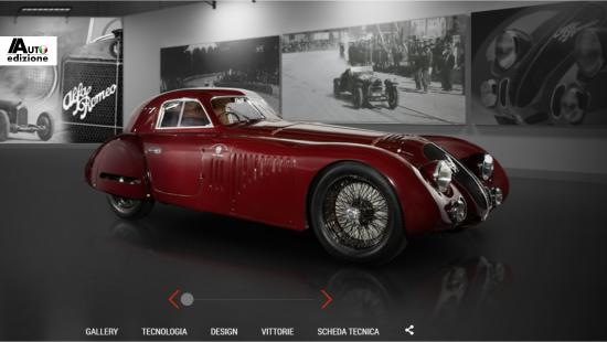 De elegante Giulietta Sprint uit 1954 is ook de Alfa die je welkom heet voor een toch wel prachtige driedimensionale rondleiding (afbeelding bovenaan), wat als het om de auto’s gaat hetzelfde werkt als een ‘car configurator’. Deze kleine blik op een glansrijk verleden, staat intussen in schril contrast met de nogal meedogenloze wijze waarop de poorten van de schatkamer in Arese al een paar jaar gesloten worden gehouden. Gelukkig zal dit volgens de laatste berichtgevingen ook weer goed worden gemaakt. Het zou ons niets verbazen als de heropening aan het eind van het jubileumjaar zal plaatsvinden en dat een splinternieuw (achterwielaangedreven) model het feest compleet zal maken te midden van de oude kroonjuwelen.