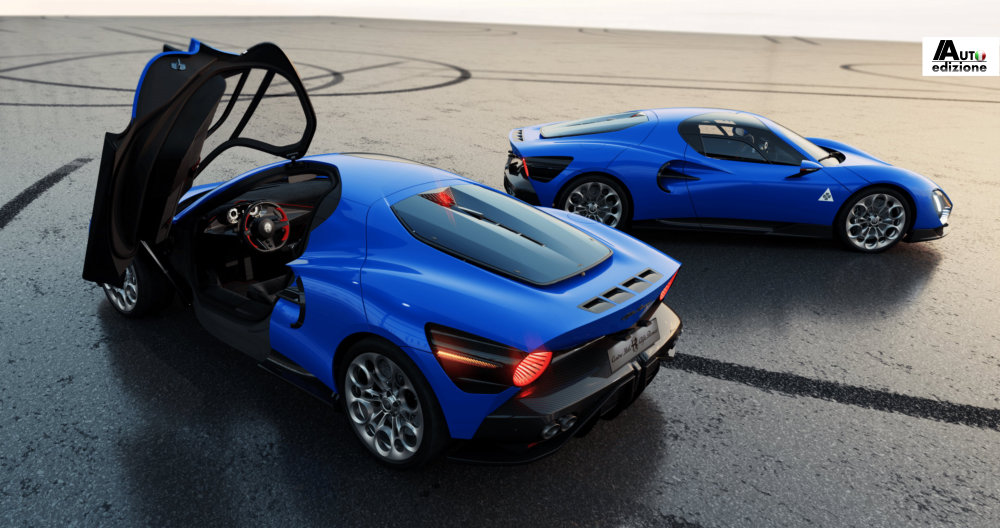 Net zo uniek is de Blu Reale die Alfa Romeo vandaag laat zien. Je ziet overigens direct de verschillen met de rode die vorig jaar is gepresenteerd. Het zijn andere elementen en kleurstellingen in het interieur (en meer sportieve moderne zwarte look met rode afwerking voor onder andere het stuur), een andere variant velgen, plus de scudetto in meer klassieke sobere vorm. De 33 Stradale was voor de 33 uitverkoren klanten verkrijgbaar in Blu Reale, Rosso Alfa en Rosso Villa d’Este. De plaatjes die je hier ziet komen met een persbericht dat Alfa Romeo op de derde van derde maand, oftewel aanstaande zondag de 33 wil vieren. Men roept het uit tot 33 Stradale Day. Of en wat er staat te gebeuren is niet duidelijk en nog een verrassing. Maar liefst 250 Alfa Clubs over de hele wereld worden op de hoogt gehouden over deze speciale dag. De inmiddels bijna traditionele Tribe Days vinden dit najaar weer plaats.