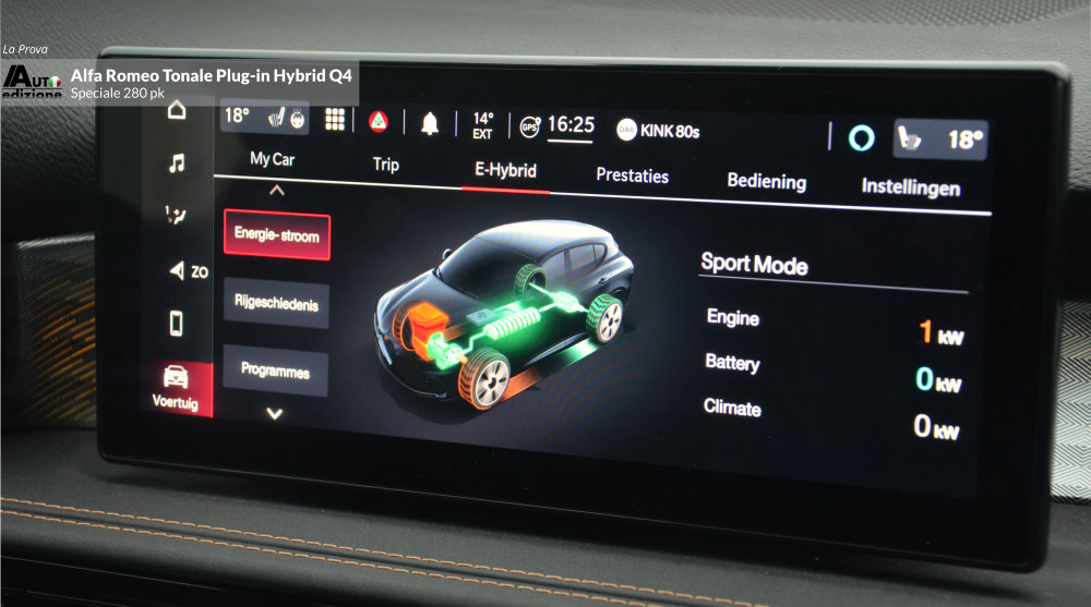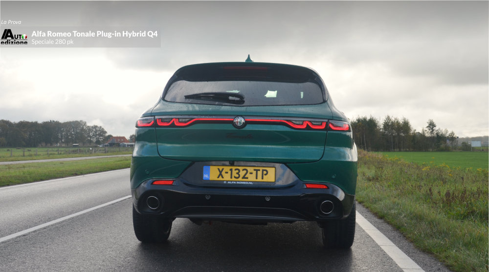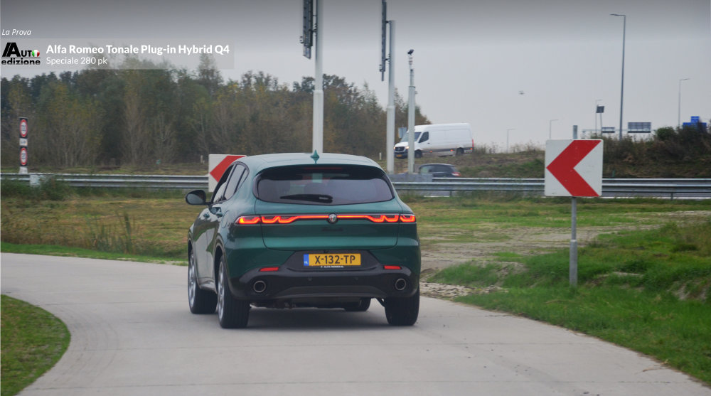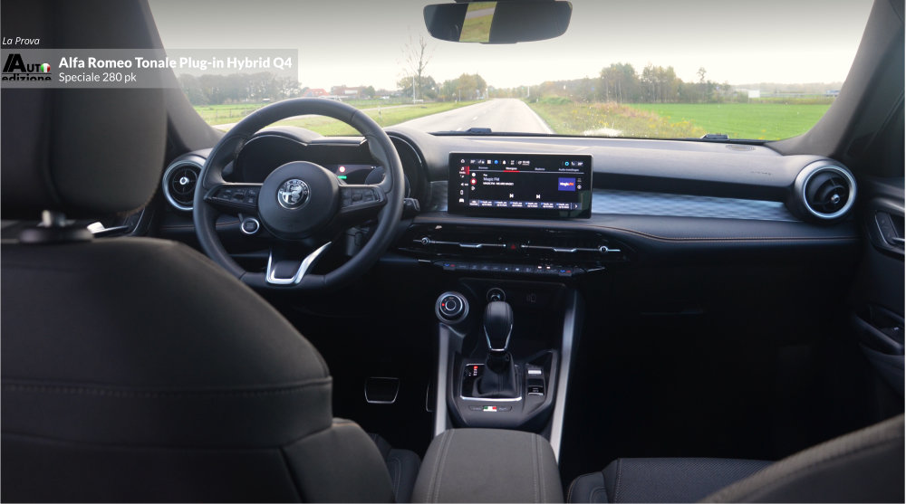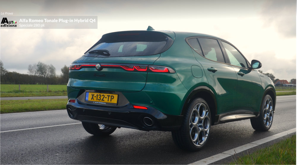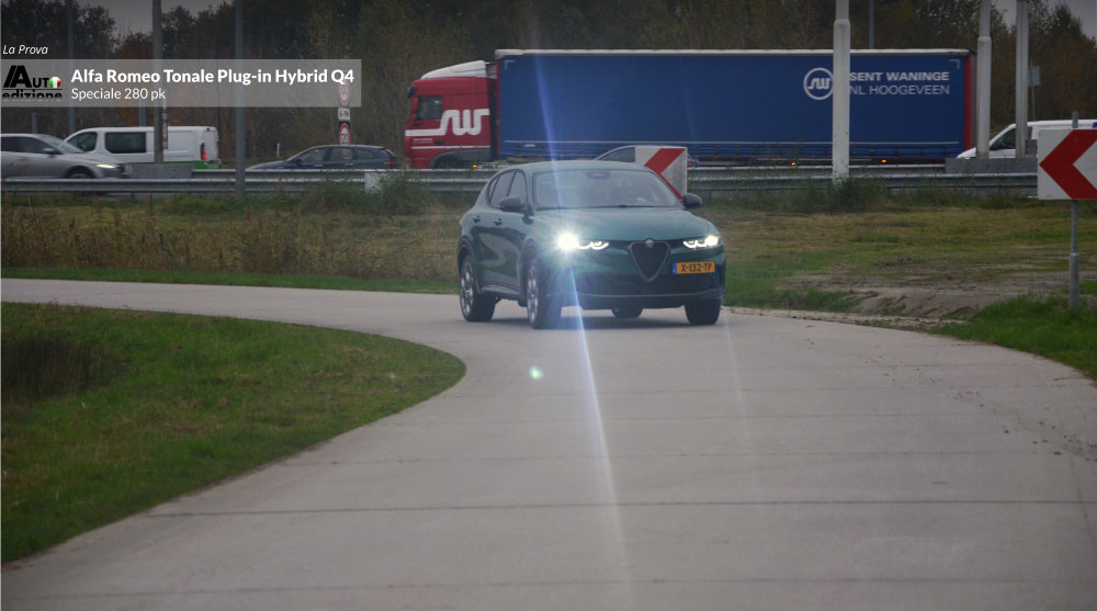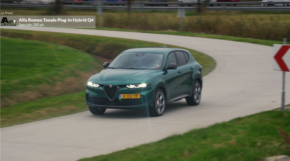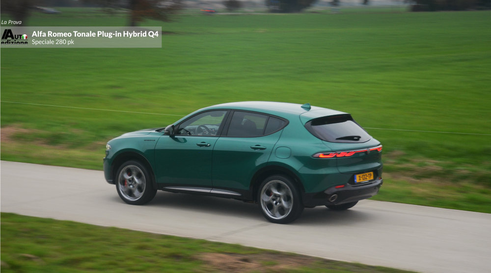 Meer dan een jaar geleden reden we de Tonale MHEV met 1.5 en 160 pk. Geen verkeerde auto, maar we misten toch een paar puntjes op de ‘i’. Vooral qua rijdynamiek (transmissie en stuurgevoel) en laat dat nou net de USP van Alfa Romeo zijn. Kort daarna zijn we voor de zekerheid naar de dealer om de hoek gerend om de PHEV aan de tand te voelen. Een gevoel van opluchting bekroop ons omdat de gestekkerde Tonale een heel andere snaar bij ons wist te raken. Nu reden we ‘m eindelijk wat langer en de conclusie is op 1 puntje na dezelfde als toen. De Tonale Plug-in Hybrid Q4 is een zeer volwassen aanvoelende SUV in het compacte segment. Dankzij het batterijpakket lijkt deze Tonale een wat prettigere gewichtsverdeling te hebben dan de MHEV Hybrid. Gevolg: Veel vermogen en een goede wegligging, gecombineerd met comfort en hoogwaardige afwerking. Een meer dan waardige opvolger van de ons al in 2020 ‘ontvallen’ Giulietta. De PHEV is de Tonale zoals ie moet zijn… op dat ene kleine puntje na; Het stuurgevoel op het gebied van directheid en weerstand. Bij hogere snelheden voelt hij in de bocht wat minder trefzeker en te licht. Het voelt een beetje als het spelen van een behendigheidsgame à la Mario-kart tegen je zoon van 10. Je legt het af omdat hij die wat nerveuze en gevoelige ‘handling’ nog wel aan kan met z’n verse zintuigen. Bij het snelle en korte bochten werk lijkt de hoge koets wat te rollen. Maar qua vermogen en souplesse is hij dus twee klassen beter dan de MHEV Hybrid. Het overspringen van elektrisch naar motorisch en weer terug geschied geruisloos en de 1.3 functioneert vlekkeloos op de achtergrond. De AT6 bak switcht zonder aarzelen. Op de snelweg voelt de auto aan alsof hij evengoed uit een segment hoger zou kunnen komen. Het economische aspect bevalt ook mits je voldoende de stekker gebruikt. Je kunt van en naar je werk (in ons geval 80 km per dag) behoorlijk elektrisch blijven rijden en dat drukt de benzinekosten behoorlijk.