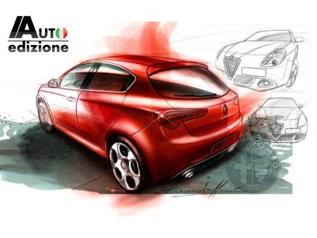 Normaal gesproken blijft het gemaakte beeldmateriaal over de ontwikkeling van een splinternieuwe auto altijd nog even in de la liggen. Maar dat geldt niet voor deze schets van Centro Stile designer Alessandro Maccolini. Ver voordat wij de eerste zwaar beplakte exemplaren op de weg zagen verschijnen tekende hij al deze suggestie voor de uiteindelijke lijnvoering van de mooie vijfdeurs Alfa. Dit alles is te danken aan het Facebook profiel over de Giulietta waar deze tekening op staat. Het is niet duidelijk of de tekenaar zelf met de schets naar buiten is gekomen.
