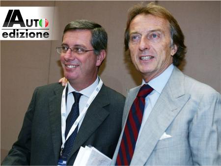 Op deze archieffoto zie je Ferrari president Luca Cordero di Montezemolo (r) met aan zijn zijde de in augustus 2008 overleden Andrea Pininfarina (l).