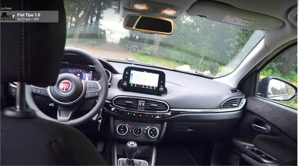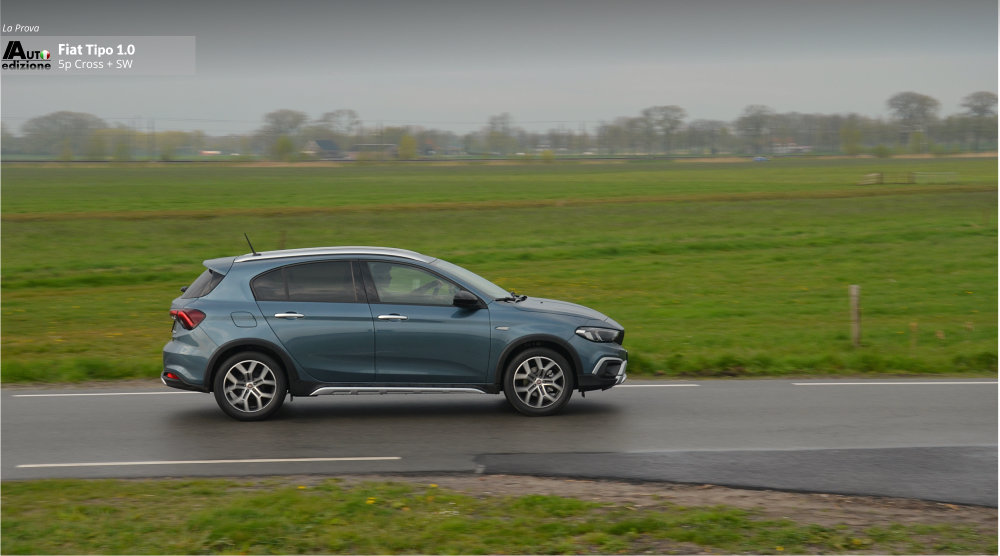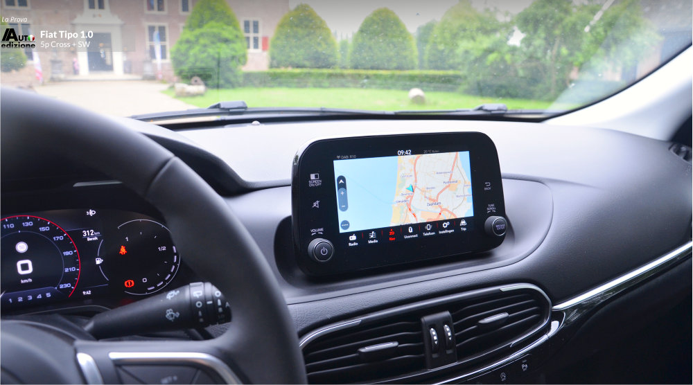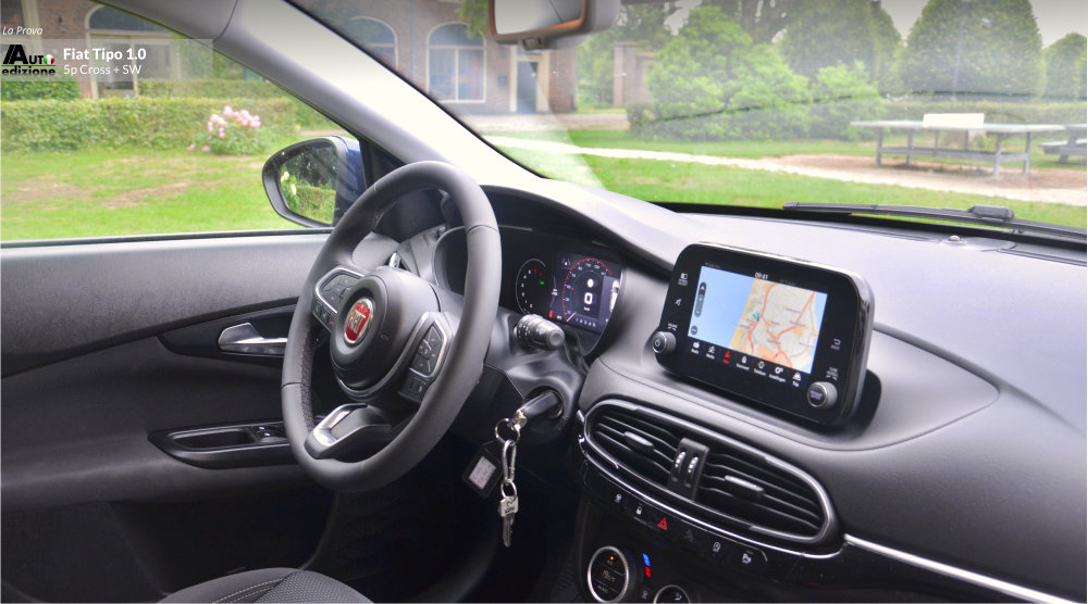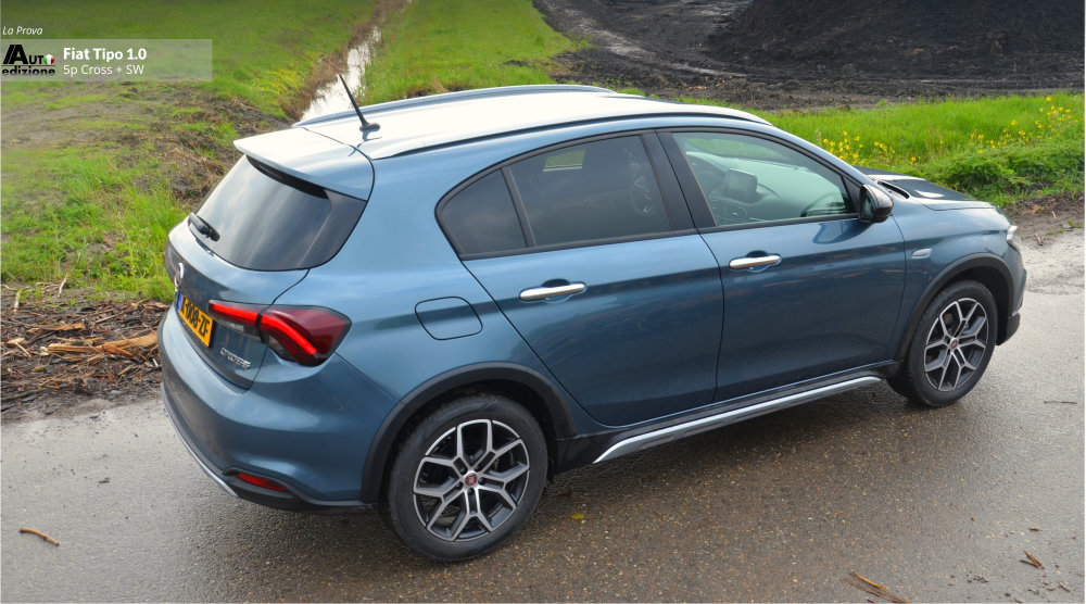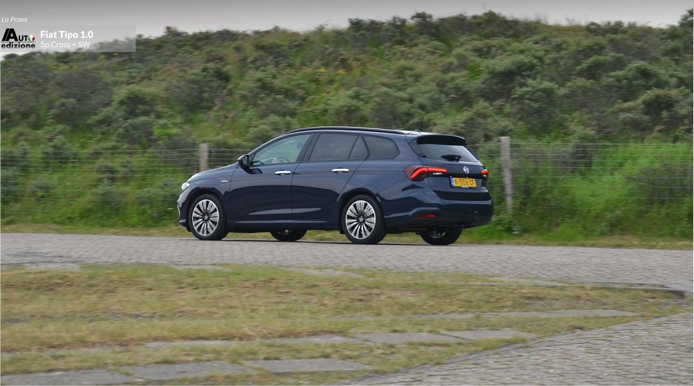 De Tipo is een uitblinker in comfort en heeft een hele fijne rijdynamiek met goede wegligging. Iets wat veel andere merken in dit segment en voor deze prijs moeten ontberen. Een paar jaar geleden reden we de SW nog een 1.4 van 95 pk die zwaarder aanvoelde en ook snel minder zuinig gereden werd (de 120 pk reden we ook en is met 1 op 11 gemiddeld natuurlijk nog dorstiger). De 4 cilinder Tipo ligt ons minder lichtvoetig in het geheugen dan deze 3 pitter 1.0 Turbo met 5 pk minder. Verklaring; 190 Nm koppel komt al vrij bij 1.500 t/min (de 1.4 95 pk 127 Nm bij 4500 t/min) en zoals gezegd de auto voelt letterlijk lichter aan (1500 kilo trekgewicht). Een glimlach volgt als je op de autosnelweg merkt dat ie comfortabel blijft aanvoelen en klinken, en dat je met deze handmatige vijfbak ook nog eens vlot kunt doortrekken naar hogere snelheden. De echte grijns volgt natuurlijk als je even stopt om te tanken… “Wanneer had ik ook alweer voor het laatst getankt? hmm…haha.” Dat komt omdat de tank 50 liter inhoud heeft (5 l. meer) en gemiddeld 1 op 17 doet ongeveer. De Cross is 7 mm hoger dan de normale Tipo maar qua verbruik, en belangrijker nog qua dynamiek, merk je daar eigenlijk niets van.