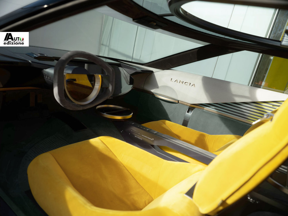 Het interieur bestaat uit de beste natuurlijke duurzame materialen (zoals hout en wol) en wordt omgeven door het technologische SALA systeem. Dat laatste staat voor de connectiviteit met audio, licht en lucht volgens Lancia’s nieuwe filosofie. Te bedienen met echte knoppen of gewoon met je stem. De Lancia Pu+Ra HPE oogt aan de buitenzijde als een ruime coupé. Dat is modern, maar ook typisch Lancia dankzij de oorspronkelijke naamgever uit 1975. Volgens Lancia zal de HPE (High Performance Estate) van de toekomst een luxe maar ook sportieve elektrische auto zijn met een autonomie tot wel 700 km. Lancia wil in het zakelijke premium middensegment weer een rol van betekenis gaan spelen en de visie daarop is in onze ogen merkgetrouw en tegelijkertijd redelijk revolutionair. De vormgeving is nu nog typisch dat van een concept, maar je ziet overduidelijk dat het herkenbare Lancia-aspect reeds aanwezig is en dus toepasbaar op een productiemodel. Lancia zegt vanaf 2026 enkel EV’s te willen produceren en begint dan met een topmodel in het grotere middensegment. De nieuwe Ypsilon, die ongetwijfeld ook elementen zal hebben van wat je hier ziet, start volgend jaar als hybride en als EV. In 2028 is het model ertussenin aan de beurt, die men al openlijk Delta noemt. De Pu+Ra HPE is een samenwerking tussen Centro Stile Lancia in Turijn en Cassina Store Milano aan de via Durini.
