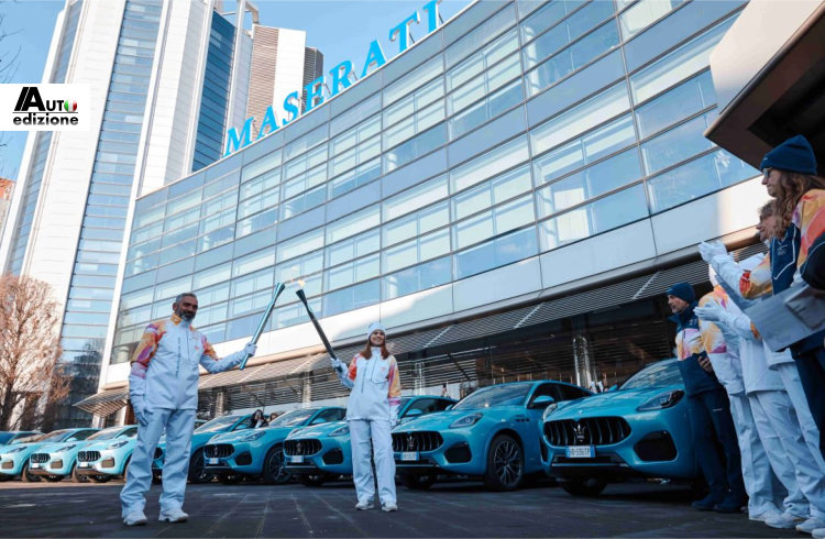 De Olympische vlam naderde Modena deze week tijdens de nationale ronde van de mythische fakkel. Daarom was er natuurlijk ook een afspraak bij Maserati. Het merk met de drietand verwelkomde de vlam die vanuit Parma kwam, door het mee te laten rijden in een prachtige MCPURA Cielo (foto boven). Eenmaal bij de fabriek aangekomen stonden tien Grecale’s als een erehaag opgesteld (foto onder) samen met het personeel van Maserati. De ijskristal kleurige Grecale’s in kwestie zijn zelfs een extra editie van de afdeling Fuoriserie. Deze hebben een prachtige parelmoer lichtblauwe tint genaamd Azzurro Aureo. Maserati doopt deze winterse editie tot Maserati Grecale Cristallo Special Edition. De Cristallo dankt zijn naam aan een gelijknamig bergmassief in de Dolomieten. Dit alles sluit natuurlijk heel mooi aan bij de aanstaande winterspelen dus de Maserati Grecale Cristallo was de aangewezen gastheer. Dit model is standaard uitgevoerd moet mooie 21 inch CRIO velgen. Het interieur van de Grecale Cristallo is uitgerust met mooi bijpassend meubilair met licht getint Premium Ghiaccio leer en is voorzien van vele mooie details dankzij een rijk pakket. De Maserati Grecale Cristallo is te bestellen als Modena, Trofeo en elektrische Folgore.